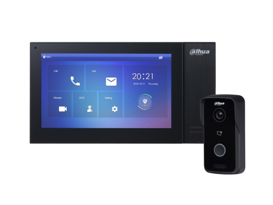 Początkowy Clmpdect IP domofonu: Wideodomofon Dahua DH-VTH2421FB-P. 7 „Monitor IP” i „Panel wywoławczy Dahua DHO2111D-P-S2”. IP 1 MP