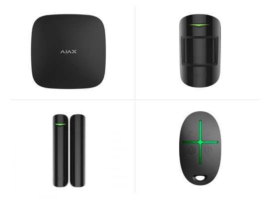zawiera cztery urządzenia: a) Hub 2: Hub monitoruje pracę urządzeń systemu bezpieczeństwa oraz wspomaga czujniki fotoweryfikacją alarmów. Dzięki niemu zawsze wiesz, co dzieje się w domu dzięki powiadomieniom push, SMS-om i połączeniom; b) MotionProtect: Czujnik ruchu reaguje na obecność osoby z zewnątrz w chronionym obiekcie już od pierwszych kroków; c) DoorProtect: Czujnik natychmiast reaguje na otwarcie. To pierwsza linia obrony Twojego systemu bezpieczeństwa, który można zainstalować na każdym typie drzwi; d) SpaceControl: Pilot uzbraja i rozbraja dom. A jedno naciśnięcie przycisku paniki wzywa posiłki w sytuacji awaryjnej. Wszystko, co się wydarzy, zostanie wyświetlone w aplikacji.