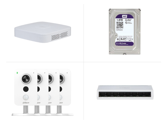 Usługa instalacji monitoringu wideo. Obliczenie zestawu dla 4 kamer: